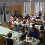 Že prvi dan smo po kosilu in popoldanskem počitku opravili prvi triurni trening. Seveda smo ugotovili, da smo po skoraj dvomesečnem premoru izgubili kar nekaj moči , gibljivosti in vzdržljivosti. Po večerji smo si ogledali zaključek gimnastičnega dela tekmovanj in odšli spat.